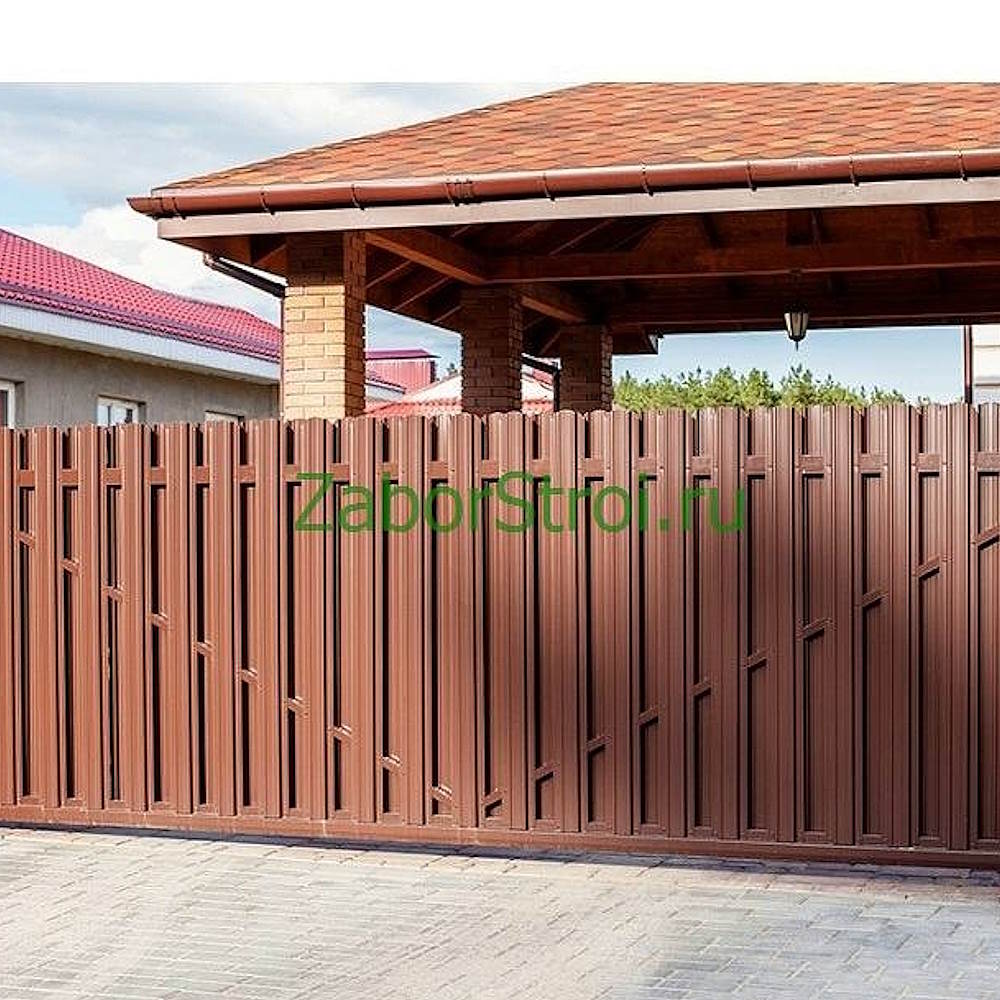Откатные ворота из евроштакетника с встроенной калиткой и автоматикой